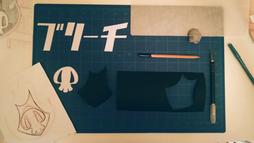This is a cut paper sculpture that I made as a tribute piece to my favorite manga series BLEACH. This design is based on the Gokon Tekko on the bottom of Kisuke Urahara’s cane. Since I was working with paper I changed the stylization a bit, while still keeping it very simple and bold.