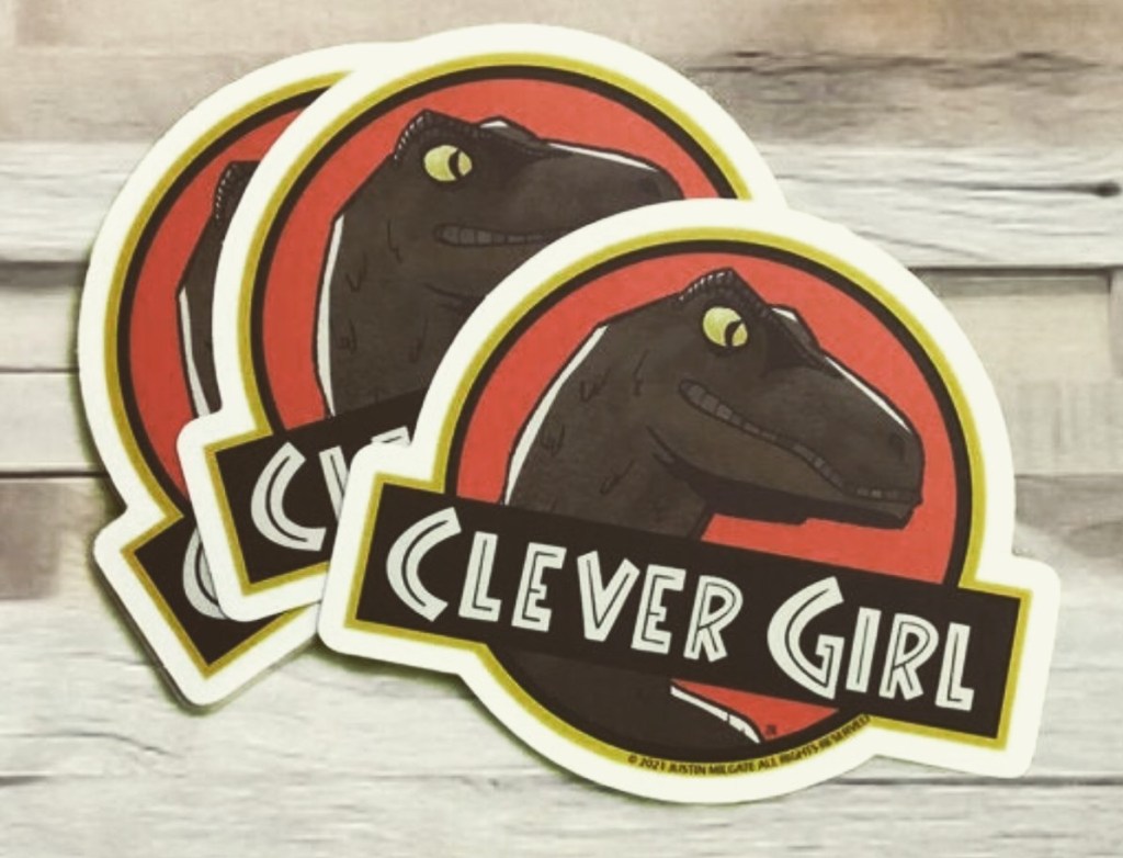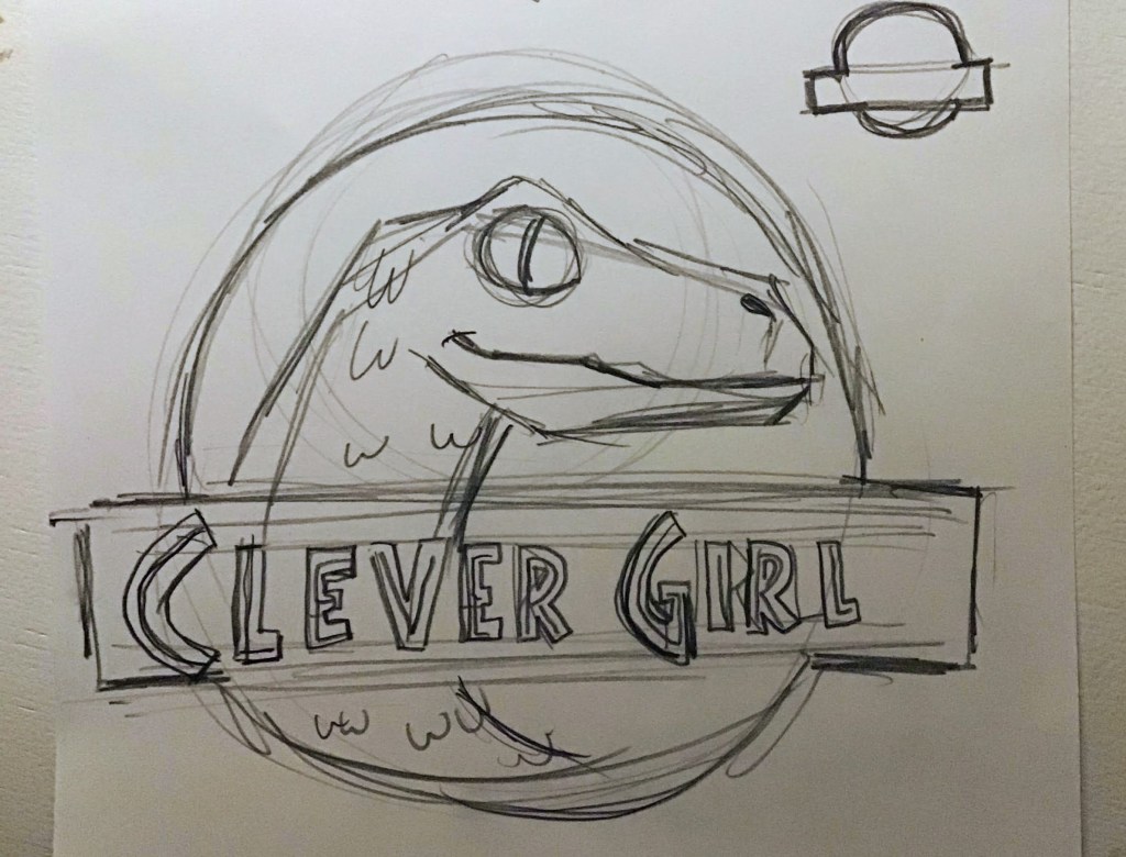 My daughter LOVES dinosaurs. She would read her Dino Dana field guide every night and told me all about them. It made me remember my own fascination with dinosaurs, particularly the velociraptor. While I’m told (by my daughter) that the velociraptor probably didn’t look like the one from Jurassic Park, that is the dino I grew up loving. One day my mind started to wonder and I got an idea for an illustration based on Jurassic Park themes that could also honor my own “Clever Girl”
